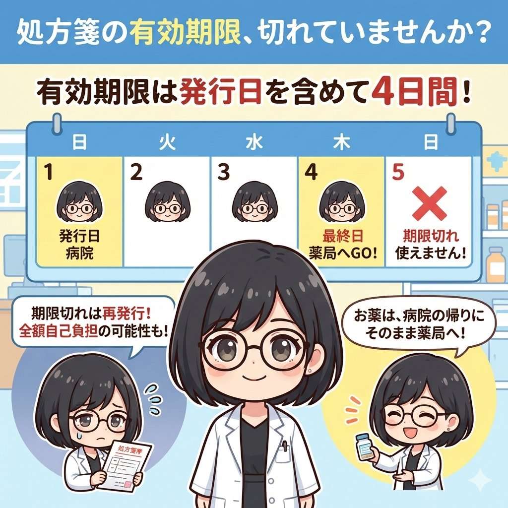 - 処方箋の有効期限は発行日を含めて4日以内が原則